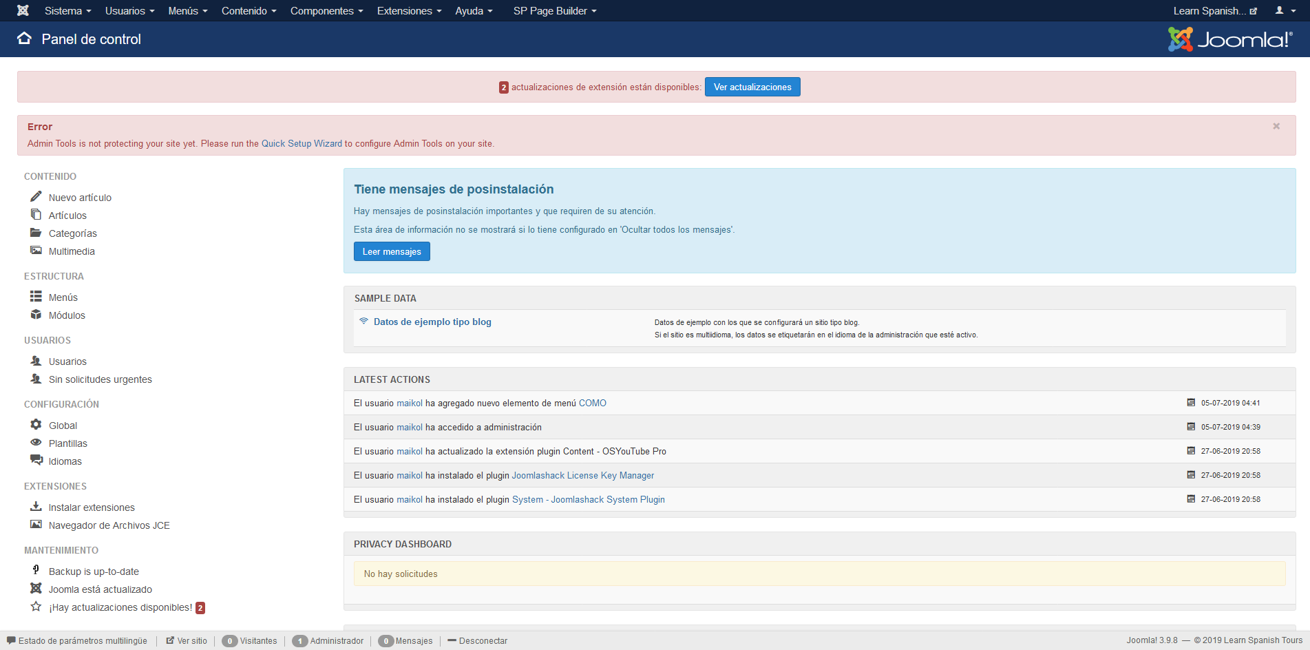 Puedes ampliar mas información sobre el backend de Joomla! en mi artículo dedicado exlusivamente a la gestión de la administración de tu sitio.