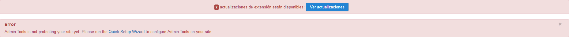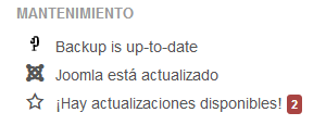 Cada vez que Joomla! o alguna de las extensiones instaladas tenga disponible una nueva versión, aparecerá un mensaje dentro de un recuadro de color rojo. Aunque este suele ser utilizado para informar de errores, en este caso pretende destacar la importancia de la notificación.