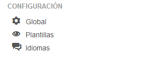 Este menú horizontal de la administración permite acceder a cualquiera de las funciones de la configuración y de la gestión de contenidos.
