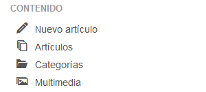 No serían necesarios más menús que el principal en el backend para gestionar un sitio web pero Joomla! ha decidido dar acceso directo a aquellas funcionalidades que son más utilizadas y, para ello, ha instalado un menú vertical situado en la parte izquierda de la pantalla.
